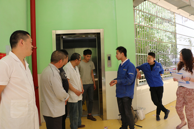 电梯专业管理人员对被邀请的20位教师及食堂人员介绍了电梯的参数及性能,并针对突发断电、电梯故障、乘客身体不适等状况进行了安全知识培训,着重介绍了电梯内外标识、乘坐电梯注意事项及发生电梯故障与事故时的应对措施。对全体参训人员进行了遇火灾、遇水灾的应急情况处理流程和措施的演练。最后,还选择了3名志愿者进行电梯困人救援演练,志愿者乘坐电梯向上运行,中途电梯突然停止,轿厢内志愿者被困,被困人员按下电梯内的报警按钮,向监控室人员求救,值班员立即通知园长办公室、电梯安全管理员、电梯维保单位,立即启动应急预案,维修人员赶到电梯困人现场,检查确认电梯位置,找到原因,演练负责人一边维护现场秩序,一边安抚被困人员。最后,电梯维保人员解除故障,打开电梯门救出被困人员。