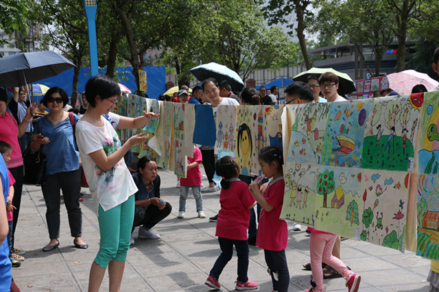 5月30日一大早,我园以"爱祖国、爱我园、爱家人"为主题的全园幼儿手工及美术书法作品展板前,家长和孩子们观赏着全园幼儿手工及美术书法作品;游戏场地内,老师忙着准备着各种游戏道具。等待的孩子们个个神情兴奋、跃跃欲试。