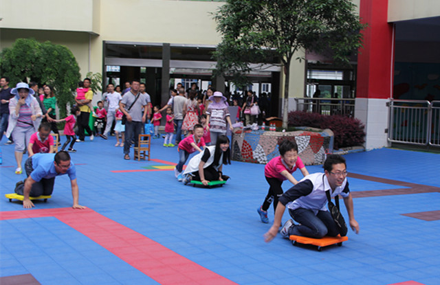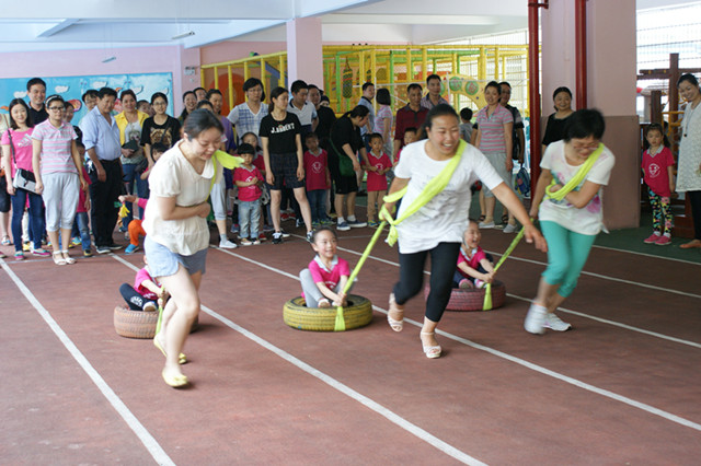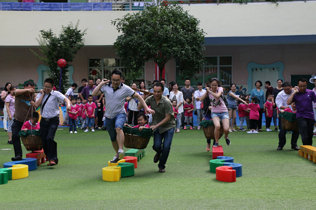 九点钟游戏活动开始了,园内成了欢乐的海洋,《快乐一家人》、《大脚小脚向前冲》、《钓鱼乐》、《过河》、《爸妈要过河》、《车轮滚滚》等一系列游戏活动把老师、家长、孩子融为一体,既加强了老师和家长的沟通理解,又加深了爸爸妈妈和孩子的感情,好多家长都感慨地说:这样的活动太好了,平时工作忙,带孩子玩的机会少,这样的活动自己既找回了童真,又让孩子享受了快乐,懂的了团结互助。