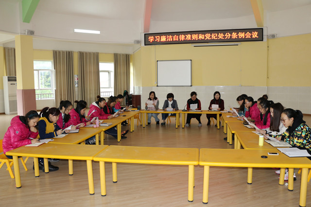 为进一步提高党员干部遵规守纪和廉洁从政的意识和自觉性。11月4日,州民族幼儿园党支部组织全体党员学习了新修订的《中国共产党纪律处分条例》和《中国共产党廉洁自律准则》。通过学习,我园党员干部纷纷表示:在今后的工作和生活中,要更加严格要求自己,进一步增强党章党规党纪意识,把严守政治纪律和政治规矩永远排在首要位置,守住纪律“底线”,自觉做守纪律、讲规矩的模范。