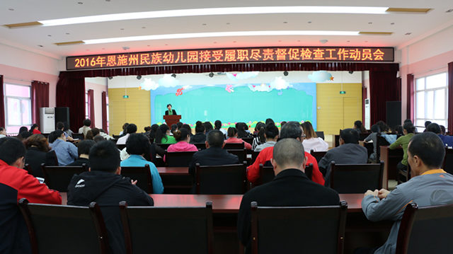 4月28日,恩施州民族幼儿园召开2016年接受履职尽责督促检查工作动员会,动员部署了全体教职工接受履职尽责督促检查工作。