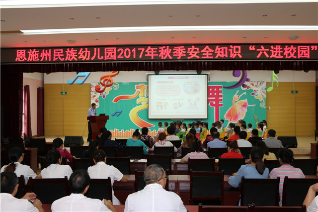 安全教育进课堂和安全知识“六进校园”(交通安全、消防安全、禁毒知识、人身财产安全、反恐防暴知识、反邪教知识)活动。是将安全教育课程化、常态化,进一步增强师生安全防范意识,提高自我管理和防范能力。在幼儿园普及安全知识、开展法律法规教育,让孩子们从小养成珍爱生命的安全意识,形成遵纪守法的好习惯。谭所长结合幼儿年龄特点,重点讲解了防拐骗的常见手段、自我防护的方法及防踩踏知识,为我园幼儿上了一堂精彩的安全教育课。