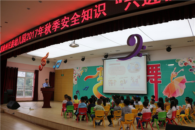 9月6日下午,舞阳派出所所长谭光平为我园小朋友上了一堂生动的安全知识课,全面开启了安全教育进课堂和安全知识“六进校园”活动。