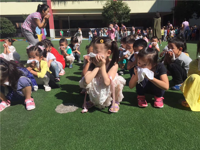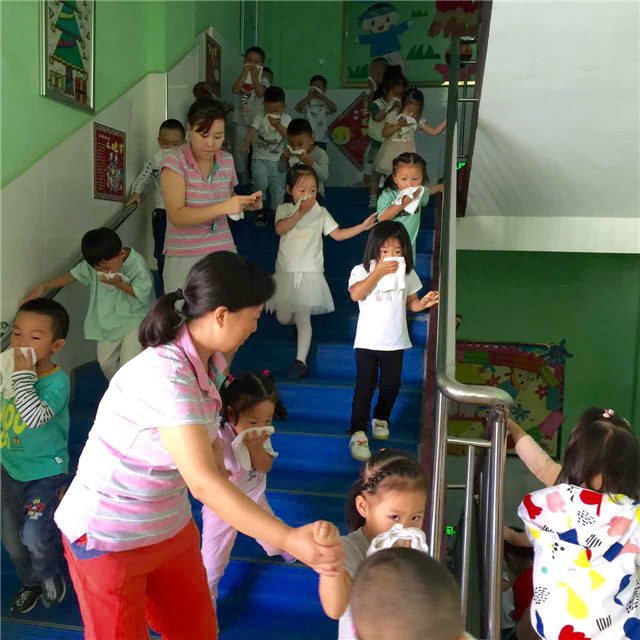 9点50分,一阵急促的警报声打破了幼儿园的宁静,全园师生立即紧急疏散,小朋友们在教师的带领下,迅速用湿毛巾捂住口鼻,弯着腰按照预定的疏散路线,迅速撤离到操场。整个演练过程组织有序,撤离迅速,紧张而不慌乱,用时不到五分钟,没有疏漏一个幼儿。10点30分全体教职工进行了灭火实战演练,大家在操练中积累了灭火常识,提高了防控火灾的意识和能力。
