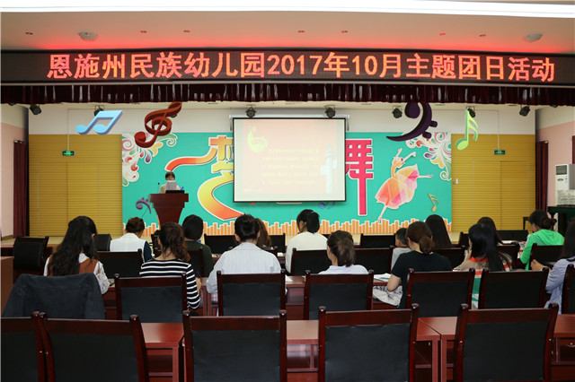 2017年10月10日下午,州幼儿园全体团员同志在五楼多功能活动厅,参加了以“师徒结对共成长”为主题的10月团日活动。本次活动主要目的在于强化团员观念和宗旨意识,要求团员立足本职工作,虚心向老教师学习,树立正确的教育观念,在师徒结对活动中教育教学水平得到快速发展。