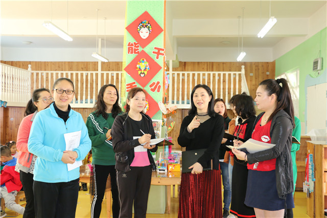 4月3日上午9:00在园长魏迎春的组织下,全园老师分年级组对各班环境布置和活动区进行了检查和观摩。
