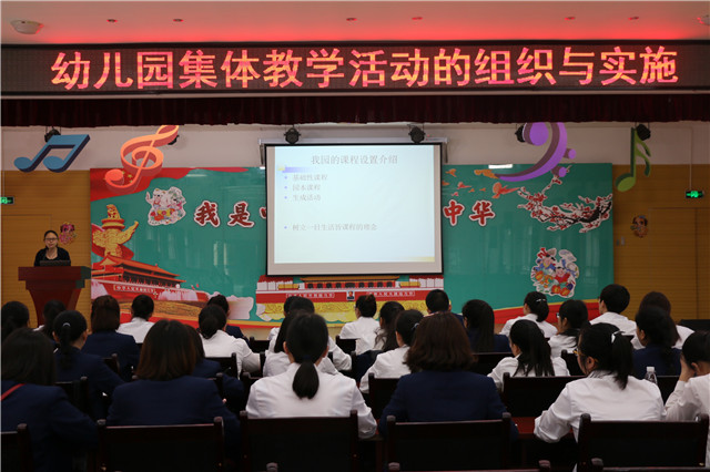 上午,全体同学来到我园多功能会议厅,认真听取保教主任向敏娜关于题为“集体教学活动的组织与实施”的讲座,主要内容包含对我园课程设置的介绍,集体教学活动指导要点的讲解。向主任希望同学们作为一个未来的幼儿教师,首先要有爱心、耐心、责任心,其次要有不怕吃苦的精神。希望大家在实习过程中,多看、多听、多问,将所学的教学理论知识运用到实践当中。