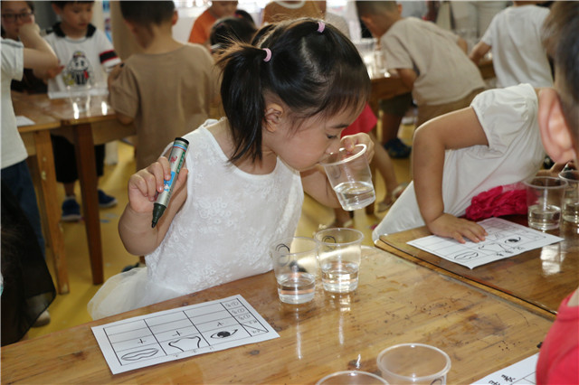 用眼鼻口识别糖水和清水的教学活动,充分体现了孩子的主体参与性,寓教于乐,丰富趣多多!科创空间的宝宝们带着爸爸妈妈在动物星球欢快地创作、游戏,妙趣横生的穿衣服比赛让大家流连忘返,剥鸡蛋比赛让孩子们在家园互动中体验到了无尽的欢乐,加深了亲子间的情感;大班围绕毕业进行的开放日感动人心,孩子们制作祝福卡片互相赠送,小贺卡承载着太多的不舍,太多的留恋,互相表达这依依惜别之情。
