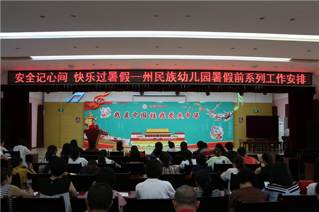 保教主任向敏娜对毕业班的工作进行了肯定,并对教师暑期学习做了安排。我园重视教职工队伍建设,每学期根据教师发展需求派老师学习充电,这个暑期安排了不同岗位,不同年龄的老师分别参加国培计划和幼教专业知识的培训活动。特别强调教师们在假期中要做好全州教师技能大赛前期准备。