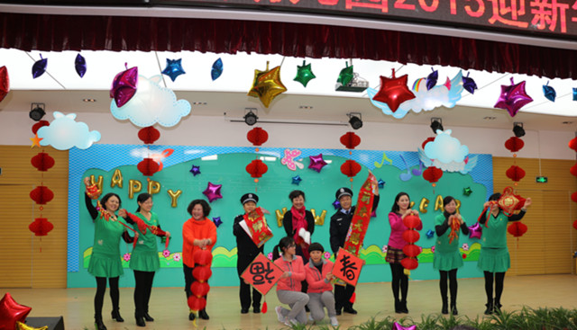 晚会以比赛的形式进行,所有节目都是由教职员工自编、自导、自演,融歌曲、舞蹈、小品、朗诵等多种节目形式为一体,精彩纷呈。老师们精心的准备和巧妙地编排的节目使晚会掀起了一个又一个高潮,现场的观众们不时报以热烈的掌声和欢呼声。晚会既表达了我园教职员工对新年的祝福和期待,又丰富了大家的业余生活,同时也给大家提供了一个展示自我、挥洒激情、凝聚力量的舞台。