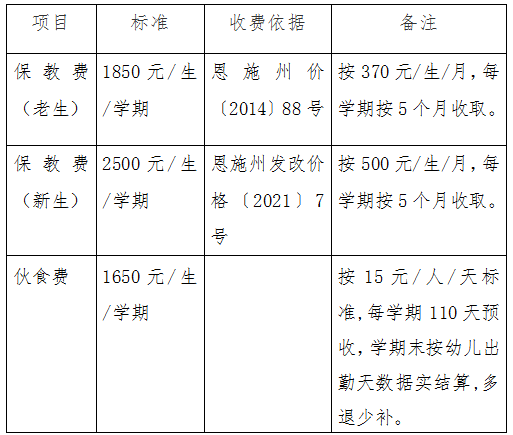 附件:恩施州民族幼儿园保教费伙食费收费公示