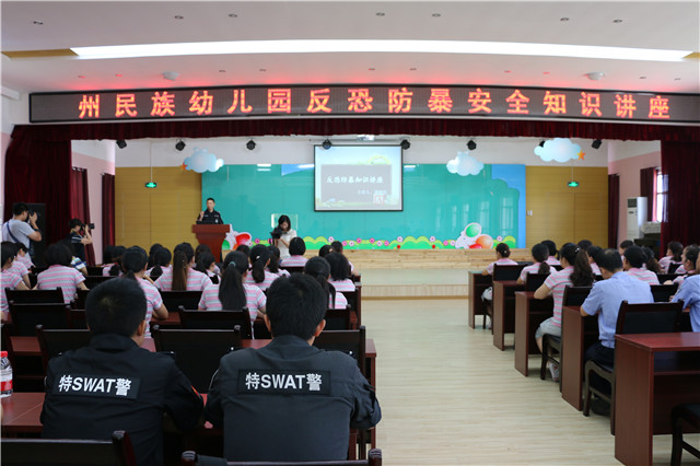 演练活动分为知识讲座和现场演练两个部分进行。幼儿园全体教职员工首先在多功能活动厅听取了反恐防暴知识讲座,谭教官通过视频展示近期发生的一系列恐怖袭击案例让我们明白恐怖袭击时刻可能发生,要随时提高警惕,接着他从防范暴恐的基本理念、如何辨别可疑人员、危机时刻的应急避险对策以及防身战略等方面进行了详细讲解,让各位教职员工对如何应对恐怖袭击有了新的认识。