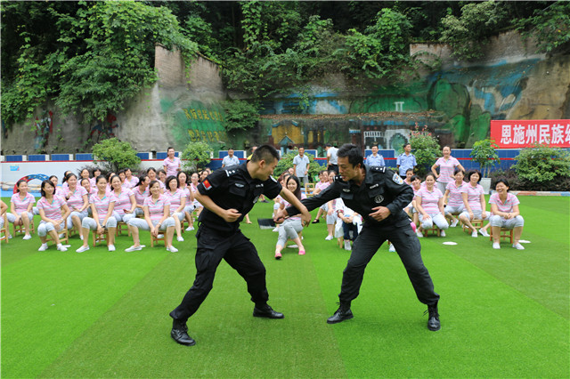 9月5日中午,我园特邀恩施市公安局反恐特警大队的官兵来园开展反恐防暴演练活动。特警大队副大队长覃遵皓,突击中队指导员杨宏、教官谭鹏程及特警队四班全体成员及幼儿园全体教职员工参与了此次活动。